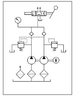 本泵可實(shí)現(xiàn)高低壓泵同時供油,輸出較大流量,高壓時低壓泵自動空載回油,減少電機(jī)功率消耗,具有停機(jī)保壓、帶壓換向等性能。